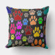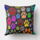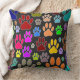 Imagens de estampas de pata de cachorro por toda parte. Design de estilo de desenho colorido. Travesseiros decorativos personalizados para casas e empresas como compradas para animais de estimação. Ideia de presente para amantes de cães de todas as idades.