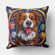 Cão alegre com pelo castanho e branco, colocado de forma destacada contra um fundo vibrante do espaço exterior. O cachorro é centrado em um quadro circular decorado com planetas coloridos, estrelas e outros elementos celestes. Sua língua está fora, e tem uma expressão feliz, dando-lhe uma personalidade lúdica. A combinação do cão com o tema cósmico cria uma atmosfera caprichosa e imaginativa. As cores são arrojadas e brilhantes, melhorando a alegria vibe geral da ilustração.