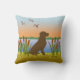 Travesseiro decorativo de chocolate Labrador Bird Dog Sunset para aqueles que amam Labradores como uma raça de cães de pássaros. Bonito Chocolate Labrador Silhouette Design como um cão de caça na vista do pôr do sol. Criada por Naomi Ochiai. Você pode personalizar texto.
