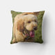 Este travesseiro bonito caracteriza uma foto de um cão dourado adorável do Doodle. Fotografia criada pelo fotógrafo vencedor dum prémio Maria Jeffs.