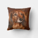 De cabelos compridos, o vermelho coloriu o travesseiro decorativo da foto da cara do Dachshund