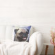 A cara fulva do pug sobre uma pintura hued azul gosta do travesseiro decorativo dos amantes do cão do fundo