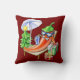 Meu personagem de desenho animado engraçado, fofo, irreverente e desenhado à mão, tomando banho de sol está no centro desta design. Um fundo festivo, vermelho-burlando escuro ancora o trabalho de arte na estação festiva de férias. A pimenta está arrepiando entre uma pequena árvore de Natal mal decorada, um parasol e alguns presentes de Natal embrulhados. Este travesseiro é um presente reconfortante para qualquer amante da criança em um dezembro frio e traz lembranças da ensolarada praia do verão.