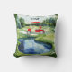 Almofada Carrinho vermelho de golfe com aquarela de campo d