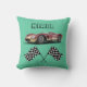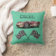 Um carro de corrida desportivo com bandeiras marcadas abaixo num pano de fundo verde onde no topo é onde você pode personalizá-lo com um fazer de nome único e seu. O esporte divertido vibe a decoração para qualquer quarto de meninos.