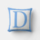 Travesseiro decorativo da letra D. monograma Bonito (solteiro inicial). A fronteira e a letra do solteiro são feitas em azul-bebê. Nossos travesseiros decorativos vêm em três tamanhos: quadrado de 16" x 16", quadrado de 20" x 20", ou travesseiro lombar de 13" x 21" e algodão ou poliéster. Produzido por mães de solteiro que trabalham de forma sustentável nos EUA, sua compra personalizada de travesseiros contribui para quebrar o ciclo de pobreza para mães solteiros e seus filhos enquanto parece excelente em sua casa! De Scarebaby Design, apoiado pela garantia Zazzle.