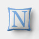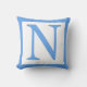 Travesseiro decorativo da letra N. monograma Bonito (solteiro inicial). A fronteira e a letra do solteiro são feitas em azul-bebê. Nossos travesseiros decorativos vêm em três tamanhos: quadrado de 16" x 16", quadrado de 20" x 20", ou travesseiro lombar de 13" x 21" e algodão ou poliéster. Produzido por mães de solteiro que trabalham de forma sustentável nos EUA, sua compra personalizada de travesseiros contribui para quebrar o ciclo de pobreza para mães solteiros e seus filhos enquanto parece excelente em sua casa! Design de Scarebaby Design, apoiado pela garantia Zazzle.