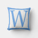 Travesseiro decorativo da letra W. monograma Bonito (solteiro inicial). A fronteira e a letra do solteiro são feitas em azul-bebê. Nossos travesseiros decorativos vêm em três tamanhos: quadrado de 16" x 16", quadrado de 20" x 20", ou travesseiro lombar de 13" x 21" e algodão ou poliéster. Produzido por mães de solteiro que trabalham de forma sustentável nos EUA, sua compra personalizada de travesseiros contribui para quebrar o ciclo de pobreza para mães solteiros e seus filhos enquanto parece excelente em sua casa! Design de Scarebaby Design, apoiado pela garantia Zazzle.