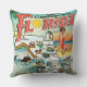 Um travesseiro postal da Flórida! É realmente retrô e excelente adicional a uma decoração doméstica do século médio. As antigas atrações, cidades e ilustrações animadas da Flórida tornam este travesseiro fantástico! Escolha seu tamanho, zíper ou nenhum zíper e escolha seu tecido. É fácil com a ajuda do Zazzle. Nós gostamos disso como está.
