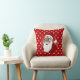 Design com a ilustração do African American Santa Clause, design de férias de Natal para crianças sobre um fundo de padrão sem costura vermelho com estrelas vermelhas e brancas;