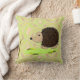 Um ouriço de desenho animado divertido sobre um fundo verde e padrão de corais.
