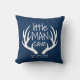 Seu pequeno vai adorar este travesseiro divertido! Este design apresenta um fundo de textura azul, galhadas e tipografia personalizada. Adicione a data de nascimento do seu filho para completar a aparência.