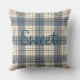 Almofada Casa & doce no creme de Brown de azuis da xadrez