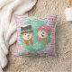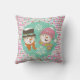 Casal de Neves e travesseiro de Natal da Tipografia, tão bonito e colorido, apresenta um fundo tipográfico branco com texto colorido que lê saudações de Seasons e feriados felizes com um círculo azul aqua com pontos brancos e cada lado tem um casal sorridente de boné, cachecol, nariz de cenoura e flocos de neve!