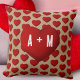 Travesseiro decorativo de Dia de os namorados de Padrão do Coração Vermelho Russo. Um belo coração vermelho com as iniciais do casal. O fundo é bege rústico com padrão cardíaco vermelho. Adicione seus monogramas e faça uma travesseiro adorável para um namorada ou namorado.