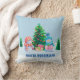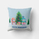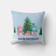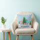Esta casal acolhedora de boneco de neve está em frente a uma Árvore de Natal esperando para abrir lá presentes. O texto na parte inferior pode ser personalizado.