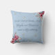 Este adorável travesseiro tem um padrão de trabalho de latência de rosas azuis, cor-de-rosa e poeirentos, juntamente com botânicos de cinzas. O fundo é azul com bolinhas brancas. O reverso do travesseiro diz: "Nesta DATA, BRIDE e GROOMS NAME estavam unidos no sagrado matrimônio". Isso daria um presente especial para a noiva e o noivo serem sempre tesouros.