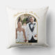 Travesseiro decorativo de Casamento do Monograma do Script Dourado Elegante Arch Foto. Um presente único e perfeito para recém-casados e guarde o favor para a equipe do casamento. Fácil de personalizar foto, nomes de noivas e data de casamento. Pegue o seu hoje!