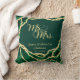 Elegante Sr. e Sra. travesseiro decorativo com design de mármore verde esmeralda e dourado que imita o padrão de geode agata. O modelo facilita a digitação de nomes, o sobrenome da noiva e do noivo, marido e esposa recem casados, e a data do evento.