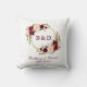 Travesseiro Dourado da lembrança do casamento do monograma da grinalda floral de Borgonha Marsala da aguarela - monograma de Borgonha