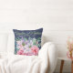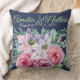 Travesseiro decorativo branco, azul, marinho monograma personalizado que incorpora buquê de flores de aquarela, com nomes e data de casamento. Impacto do excelente no seu quarto ou sala de estar. Personalize com sua cor de fundo, data do casamento, nomes e monograma inicial.