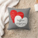 Travesseiro de Casamento de Keepsasasak Personalizado, cinzas de carvão com listras brancas. Personalizar com os Nomes de Noiva e de Groom, e Data de Aniversário, Texto está em um rótulo feito de um coração vermelho e um coração branco se fundiram, com a seguinte citação: Dois corações se tornam um
