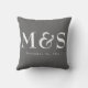 Simples suíte moderna de travesseiros decorativos de casamento para noivas que estão adorando suas cerimônias em cinzas. Tudo definido em uma fonte branca moderna com iniciais laterais.
