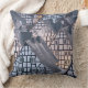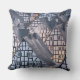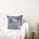 Coxim do travesseiro decorativo da foto com a arquitetura histórica das casas metade-suportadas com chaminés de fumo e as luzes sobre no início da noite no inverno na cidade Freudenberg perto de Siegen em Alemanha.