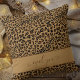 Travesseiro de Impressão Leopardo. Trendy e design de impressão animal popular em castanho e preto, de ambos os lados e personalizado com seu nome na frente.