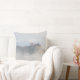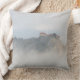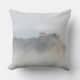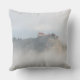 O coxim do travesseiro decorativo da foto com o castelo sangrado histórico, construído em cima das rochas ao longo do lago sangrado, cercado por nuvens e pela névoa à terra, como ele é um castelo construído no céu, no sangrado, Slovenia.