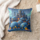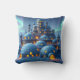 Throw pillow of an impressive castle made of igloos and stone, in a winter landscape of snow and pine trees. Magical aurora lights play in the evenfall sky, bathing the mountains and valley in a surreal atmosphere of heavenly colors. Amidst the misty strands of cold and snow, the stronghold castle known as "Winter Fire" stands. It is the last bastion of civilization and warmth before a vast expanse of frozen tundras, snowcapped mountains, and haunted forests open themselves to the wanderlust of the willing traveler... This artwork was created with ImageFX and upscaled with Leonardo.ai. Additional editing was done offline by me.