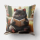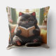Cat reading a book on sofa Throw Pillow