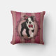 Filhote de cachorro bonito do terrier de Boston com o fundo stripy do fundo do chapéu alto, do laço e do vintage magenta, pintado pelo artista Maryline Cazenave.