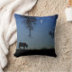 Um cavalo no céu noturno com lua crescente e árvores de carvalho. Um travesseiro azul bonito.