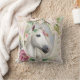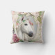 Travesseiro com ilustração química de um cavalo branco com uma coroa de flores elegante.