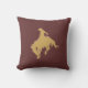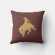 Este travesseiro mostra o que todos sabem sobre Wyoming. Cavalos e vaqueiros andam! Apresenta uma imagem de vaqueiro dourado e da silhueta de cavalo balançando sobre um fundo castanho escuro. A mesma imagem aparece em cada lado do travesseiro. *Este design usa imagem © Graphics Fatory.com*