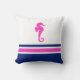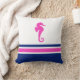 Um cavalo-do-mar rosa quente sobre uma banda de listras em azul marinho e rosa-quente.