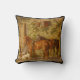 De uma pintura vintage de dois cavalos e um cão num pátio.