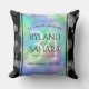 Celebre o 34º aniversário de casamento com este travesseiro decorativo na moda! A inscrição elegante com um confete hexagonal sobre um fundo opal iridescente coberto por bares pretos acrescenta um toque memorável para esta ocasião especial e um marco extraordinário. Personalize com os nomes dos casais, as datas do casamento e as mensagens de parabéns por seu aniversário. O reverso mostra design idêntico. Design © W.H. Sim. Mais informações em zazzle.com/expressionsoccasions