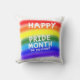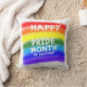 Esta imagem apresenta **"FELIZ MÊS DE ORGULHO seja você mesmo"** num fundo arco-íris, simbolizando diversidade, igualdade e autoexpressão.