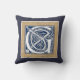 Uma bela e decorativa letra celta emboscada iluminada com cabeças de dragão de cinza sobre um fundo azul escuro e veludo. Este travesseiro tem uma dupla borda de designs de pedra, luz com uma borda escura em um lado, que é revertida no verso. Altere o plano de fundo para corresponder à sua decoração.