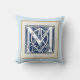 Uma bela e decorativa letra celta emboscada iluminada com cabeças de dragão de cinza sobre um fundo azul escuro e veludo. Este travesseiro tem uma dupla borda de designs de pedra, luz com uma borda escura em um lado, que é revertida no verso. Altere o plano de fundo para corresponder à sua decoração.