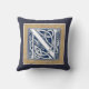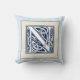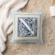 Uma bela e decorativa letra celta emboscada iluminada com cabeças de dragão de cinza sobre um fundo azul escuro e veludo. Este travesseiro tem uma dupla borda de designs de pedra, luz com uma borda escura em um lado, que é revertida no verso. Altere o plano de fundo para corresponder à sua decoração.