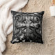 Um travesseiro decorativo com uma das minhas fotos antigas impressas em preto e branco de uma cruz muito enferrujada na porta encriptada do coração. Adorável decoração doméstica no estilo gótico.