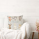 Este travesseiro decorativo encantador e aconchegante apresenta uma área de floresta com coloração aquática, animais bebês e árvores florestais. Uma pequena raposa, guaxinim e urso são fotografados na parte superior. Um veado bebê, coelhinho fofo, e uma coruja pequena são fotografados no fundo. Um nome de amostra é impresso no centro da floresta em uma fonte verde-sábio. Você pode personalizar o travesseiro com seu próprio nome ou texto personalizado.
