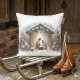 Almofada Cena de Presépio Rústica com Flores de Inverno