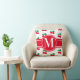 Almofada Cerejas Fruta Vermelho Padrão Monograma Branco