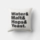 Almofada Cerveja = Água, Malte e Saltos e levedura.