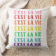 Almofada C'est La Vie French dizendo em letras arco-íris