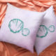 Chá de bebê com conchas de mar teal e fundo de aquarela roxa lavanda